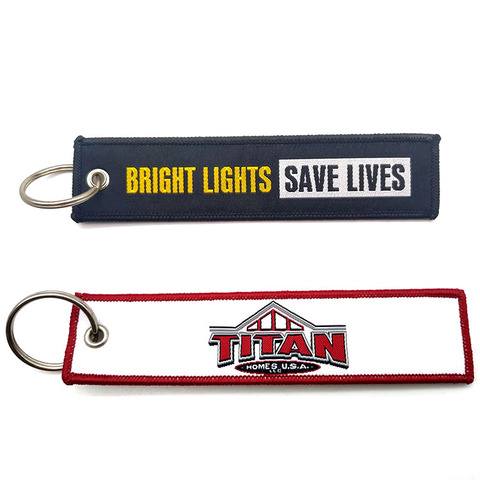 卸売デザインファブリックキーホルダー/刺繍キーリング/カスタム刺繍キータグジェットタグ